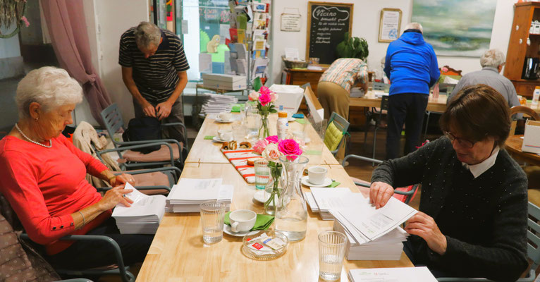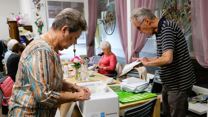 Nach diesem kurzen Einführungsteil und gestärkt nach Kaffee und Kuchen machten sich die rund 20 Helferinnen und Helfer auf ihre jeweilige Brief-Tour.