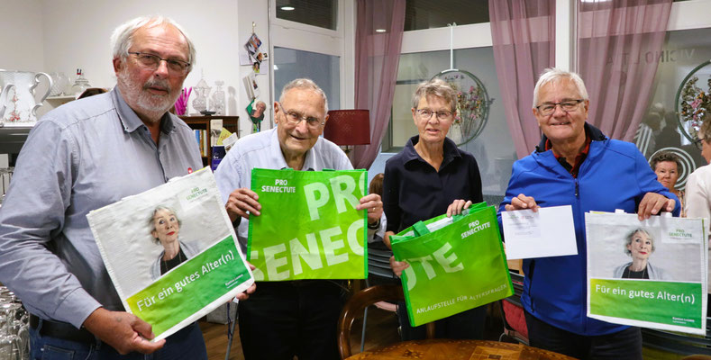 Die Helfergruppe verteilt viermal jährlich 1500 Senioren-Post an alle AHV-Berechtigten und im Herbst 5000 Spendenbriefe der Pro Senectute in jeden Briefkasten.